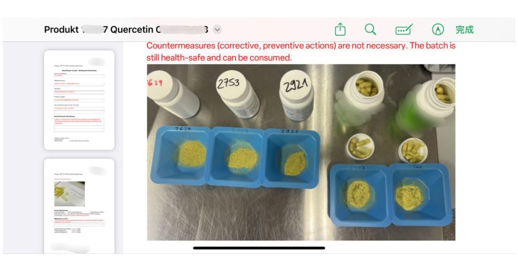 雖然這是行業內的認知,但我們認真地還是要求廠商特別為我們作檢測和分析,下方是較早前回覆翻譯成中文: 沒必要糾正和預防措施,因為該批次仍然健康安全,並且可以食用。