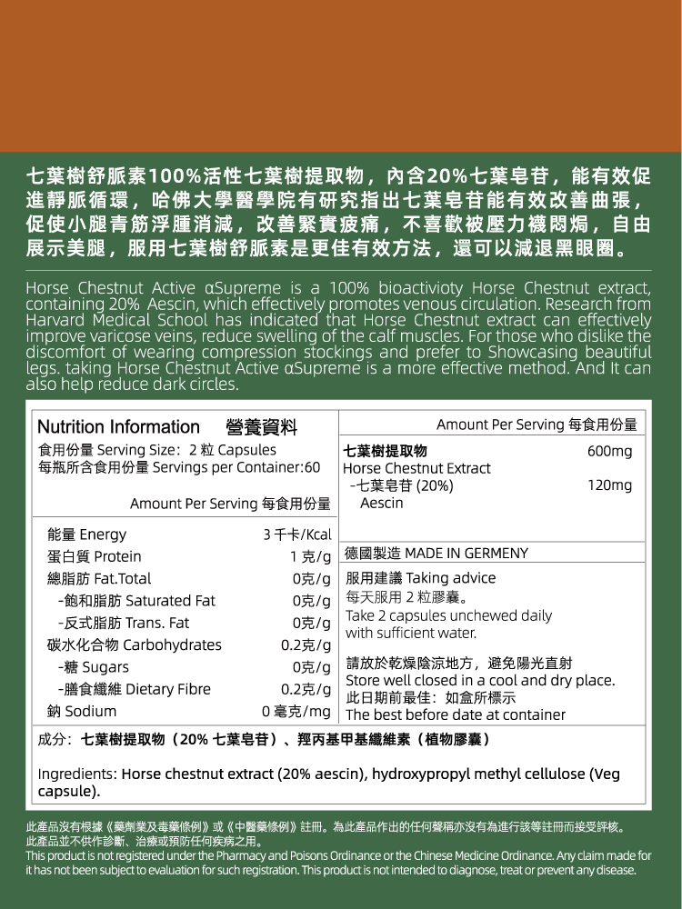 Horse chestnut active AlphaSupreme 七葉樹 舒脈素 德信健HKTVmall Fitsite 重要聲明:轉載自youtube,版權屬原載人,本站只作學術轉載,所有專家與學者資訊不代表本公司立場、宣傳及產品資訊,保健品不應代替治療,如有疑問請向醫生查詢。影片為其個人公開意見,並非為本公司產品代言或推薦人。 那裡可購買?