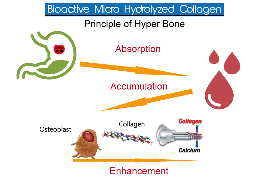 By taking Hyper Bone micro-biological hydrolysis collagen, it will help you to replenish bone collagen fibers. Therefore, calcium can be retained and utilized. We just need pay attention to a balanced diet to increase the calcium absorption. We can take milk or cheese and there will have no side effect.